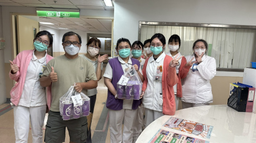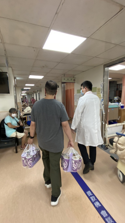 新希望基金會與新店行道會走進醫院,親手送上飲品與祝福。